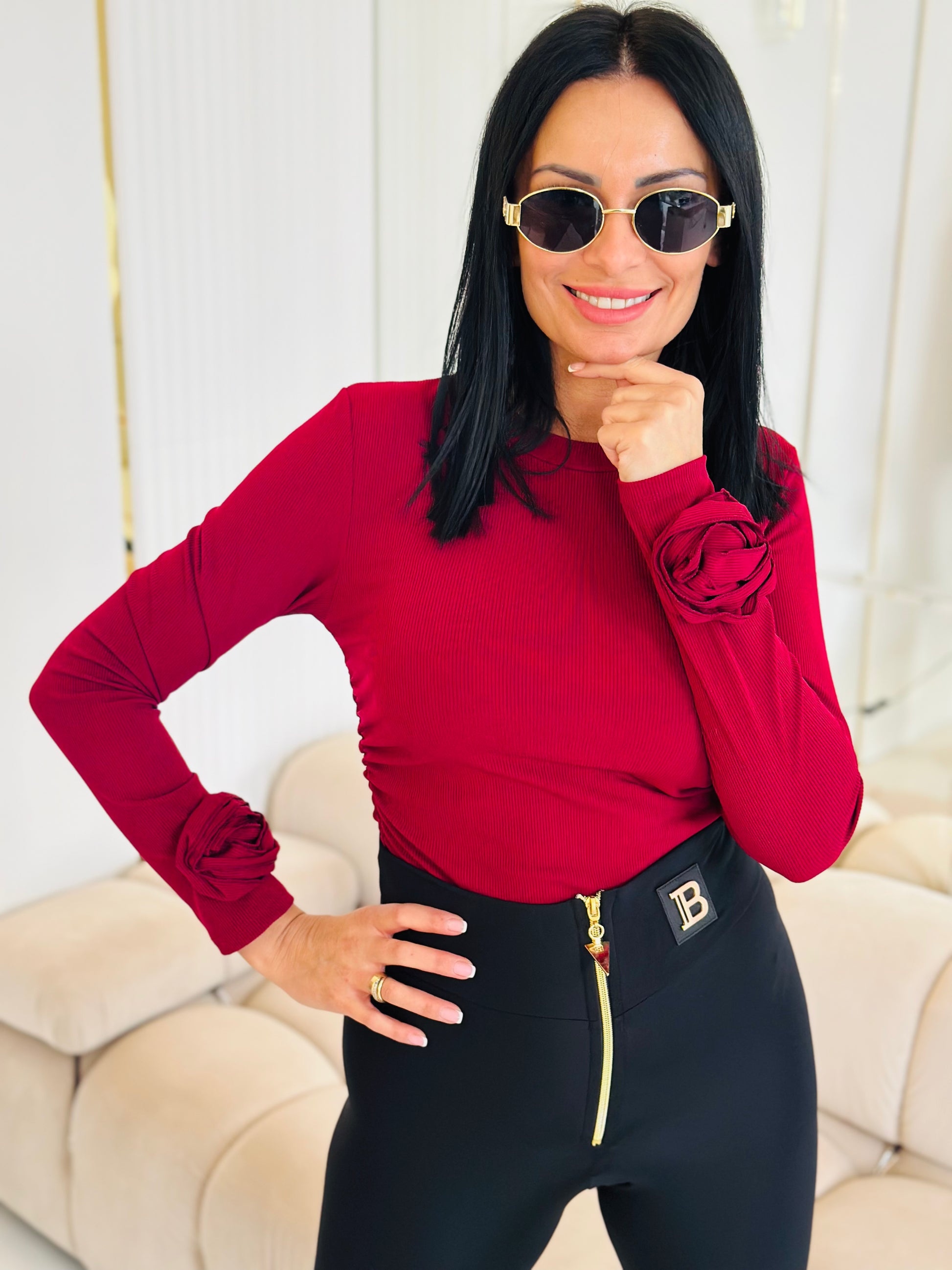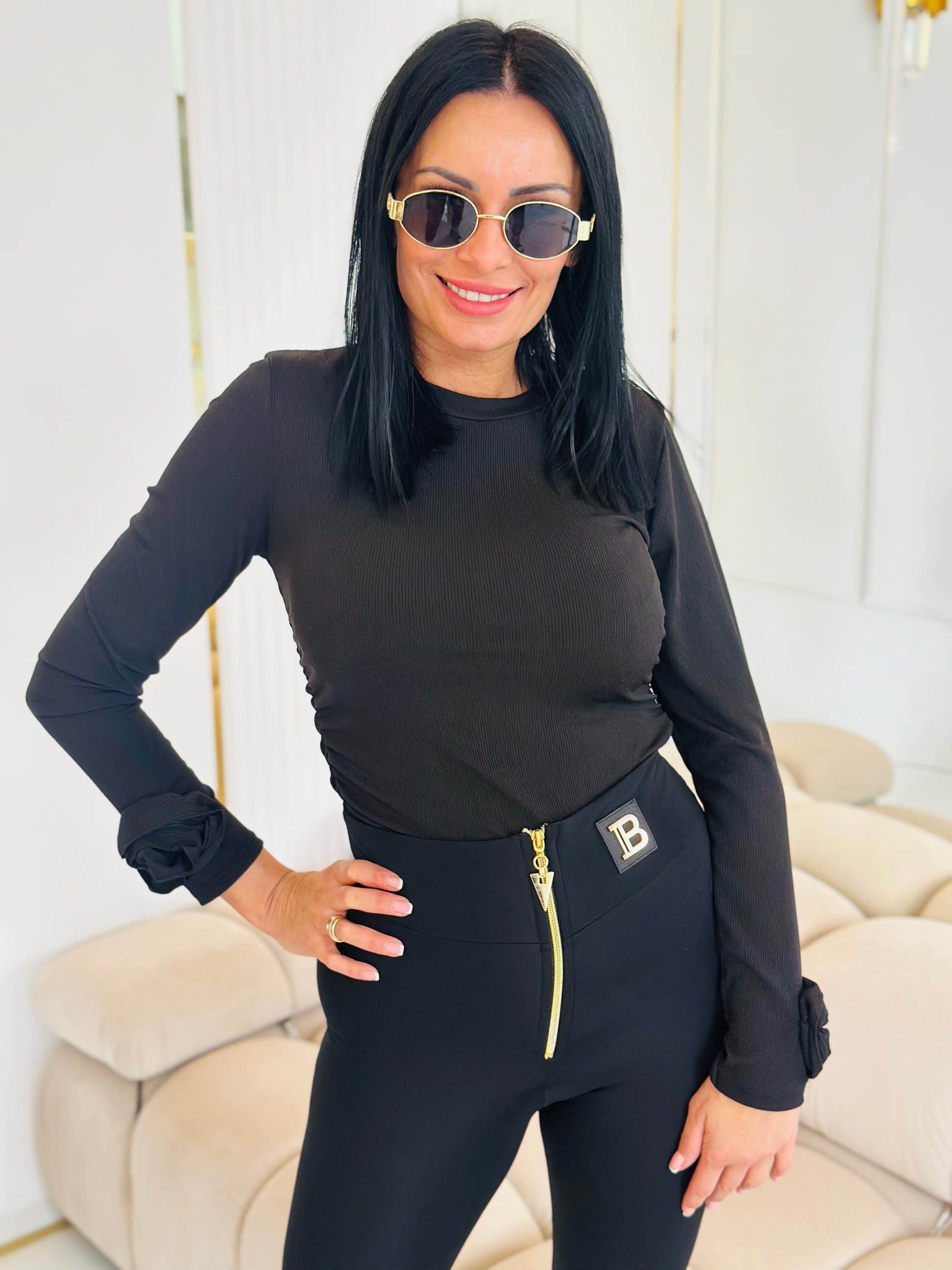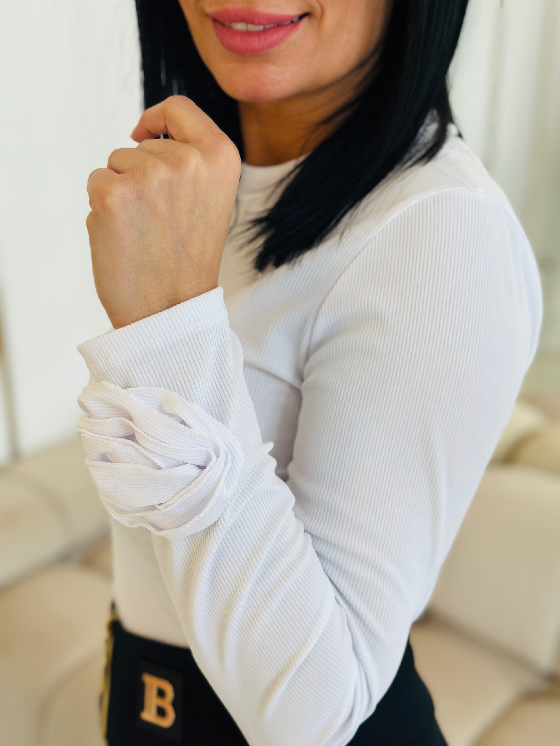 Bluzka Prążkowana – Długi Rękaw z Marszczeniami