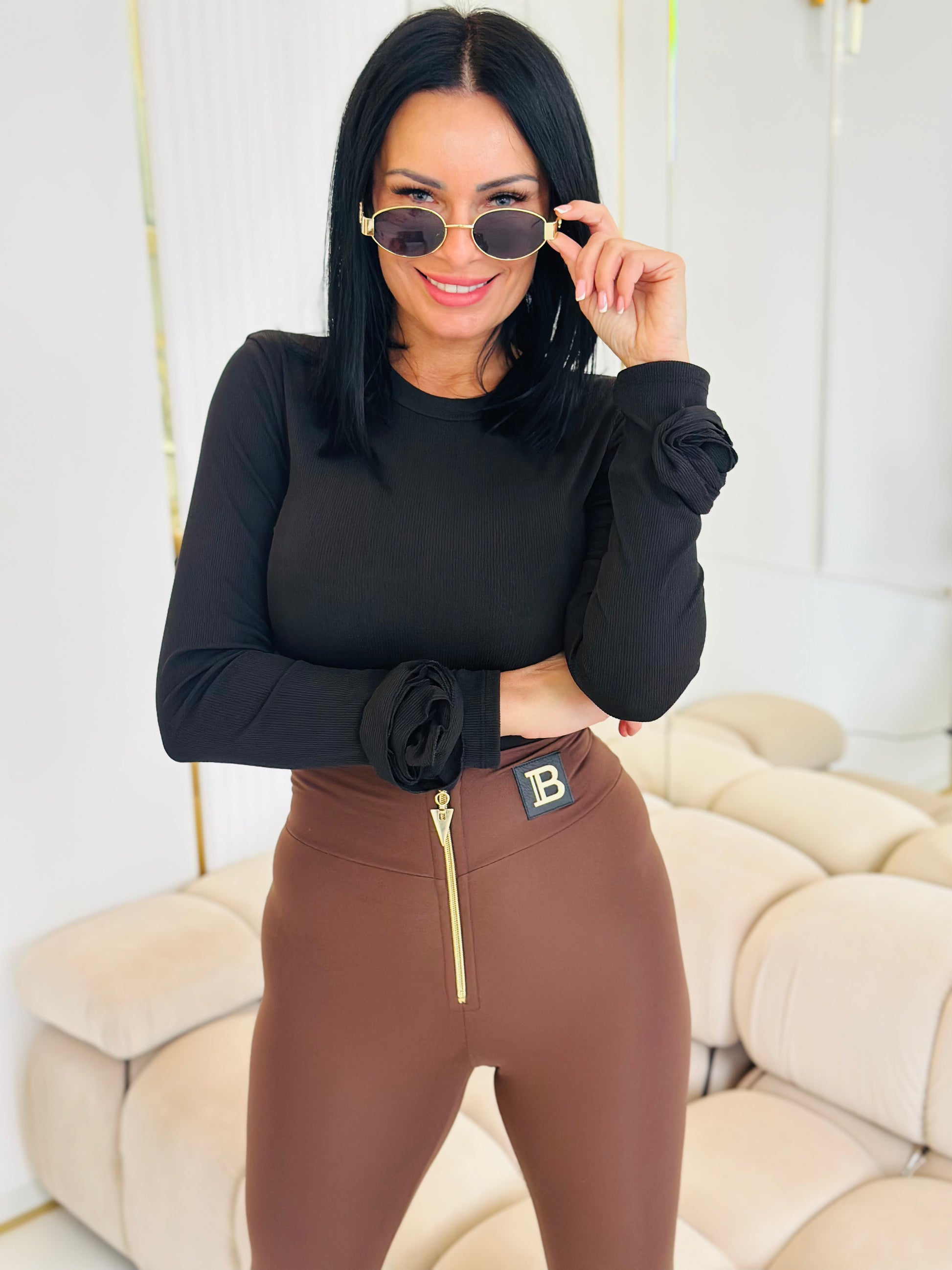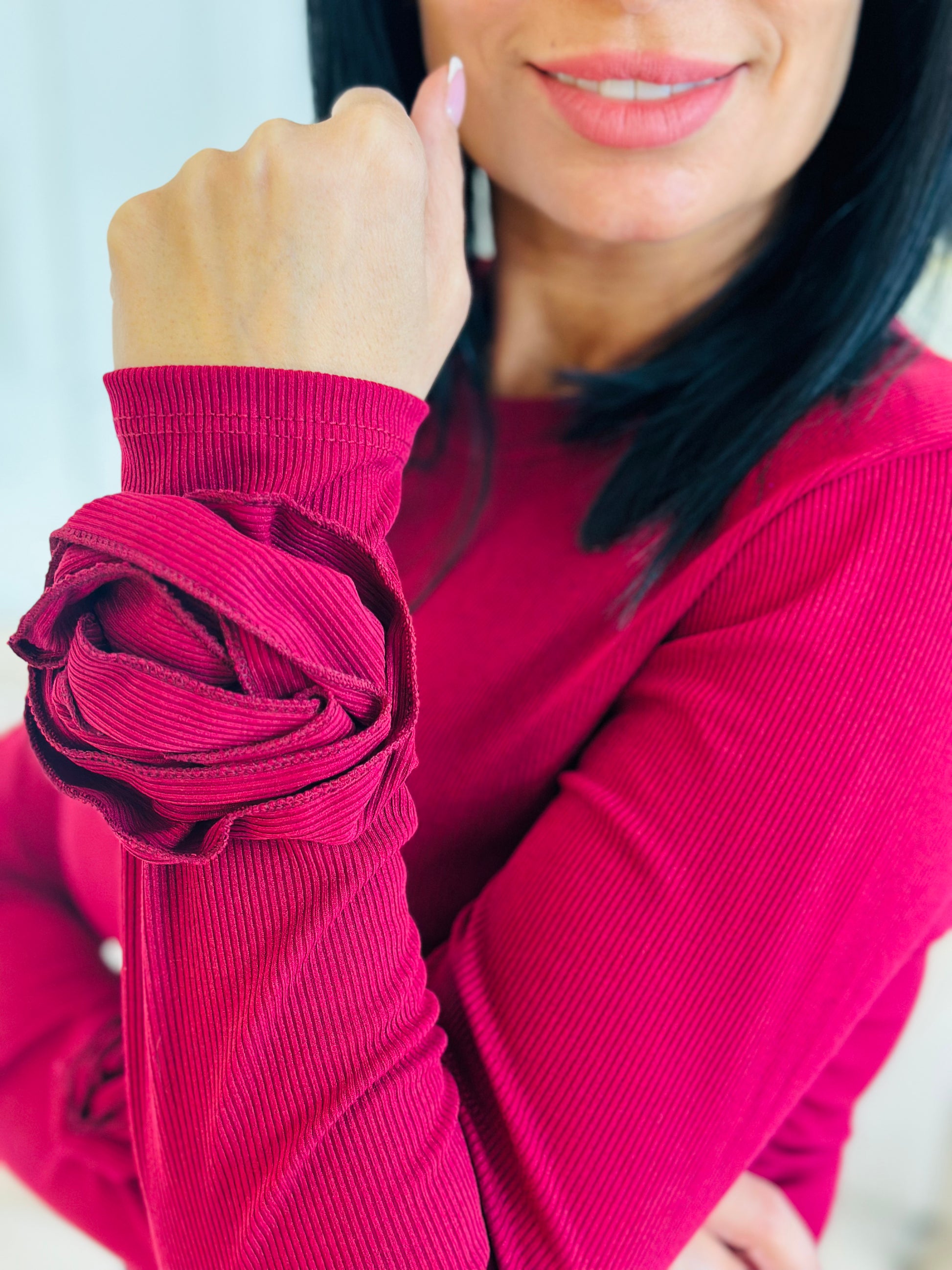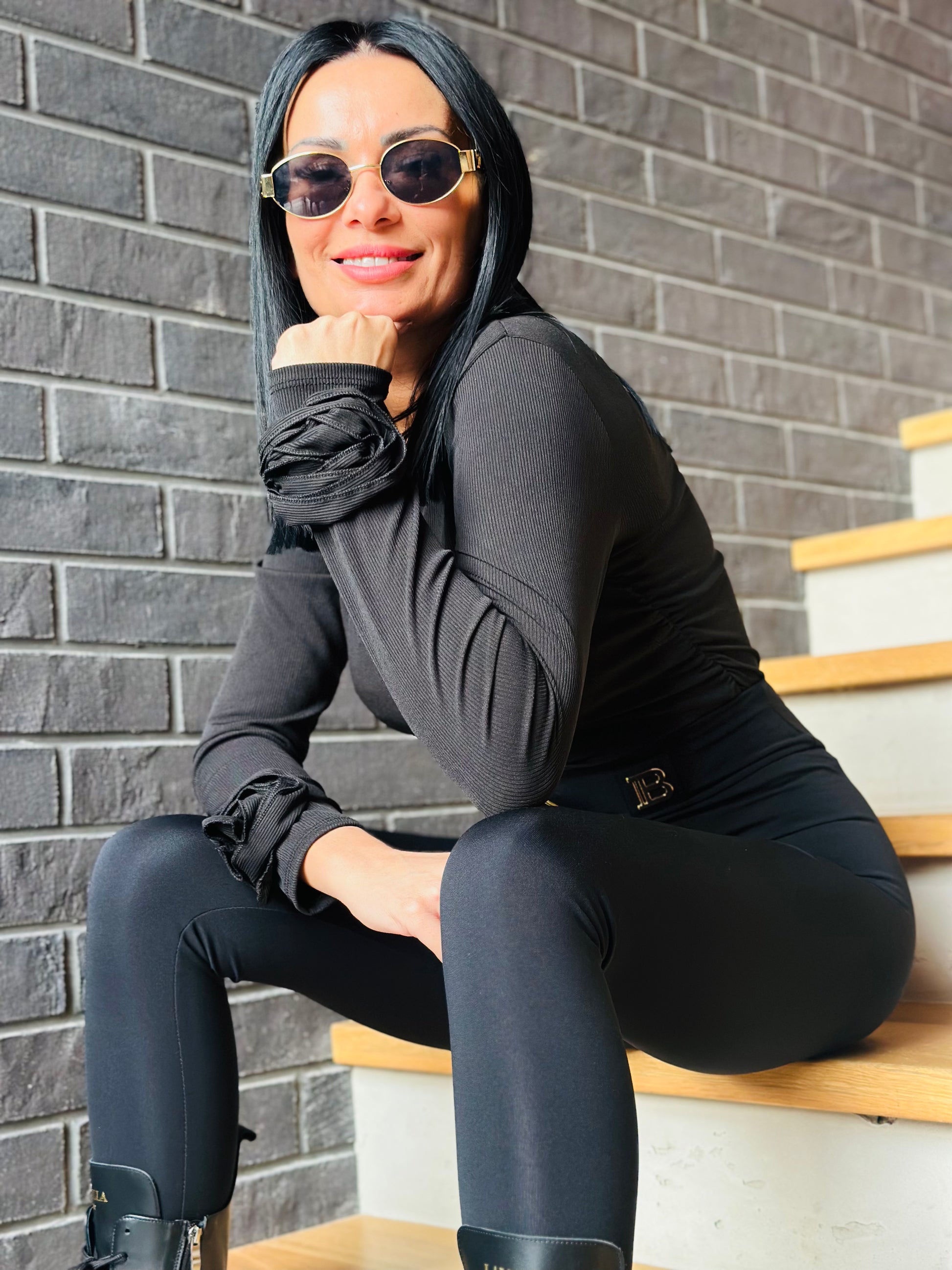 Bluzka Prążkowana – Długi Rękaw z Marszczeniami
