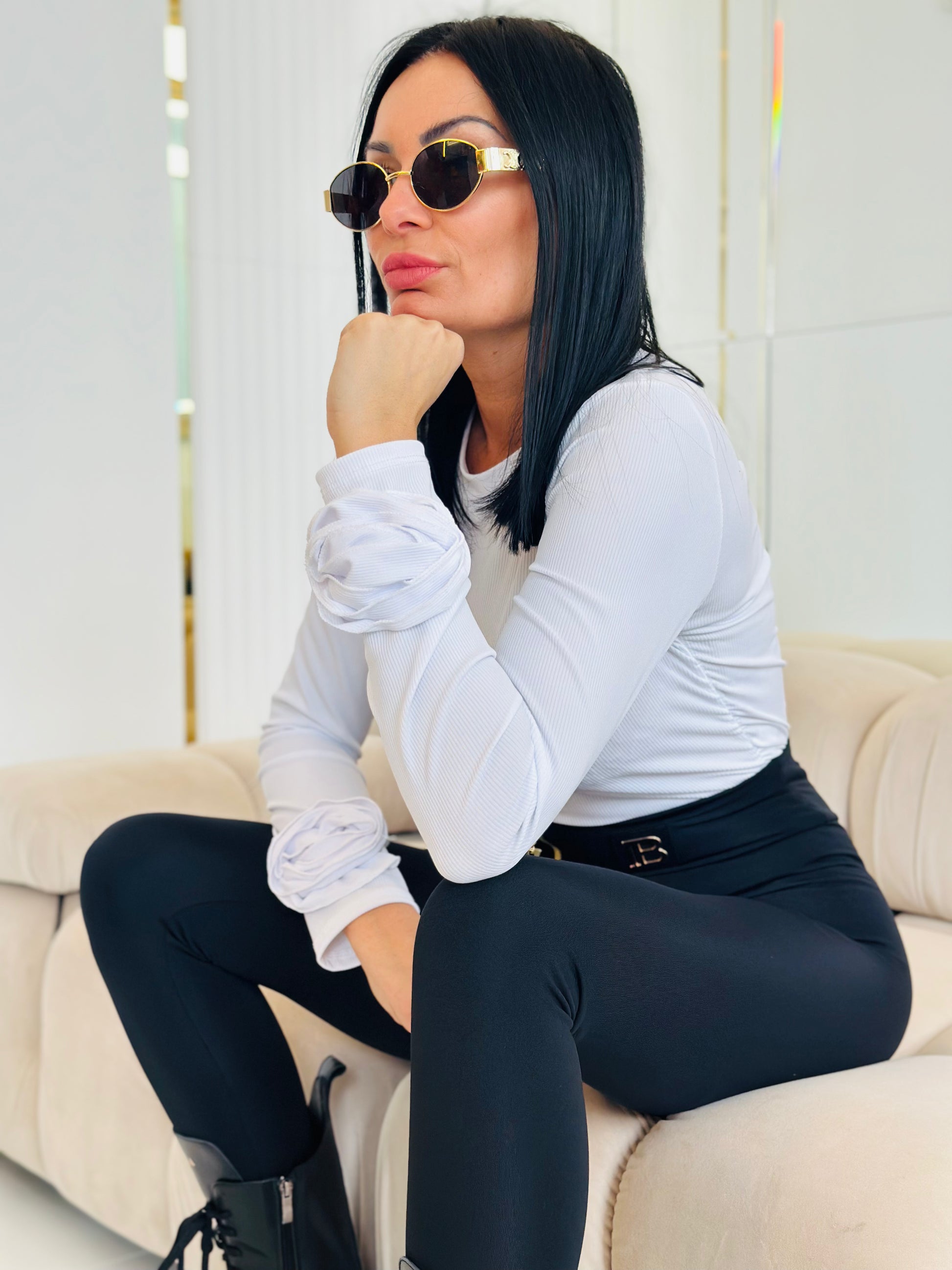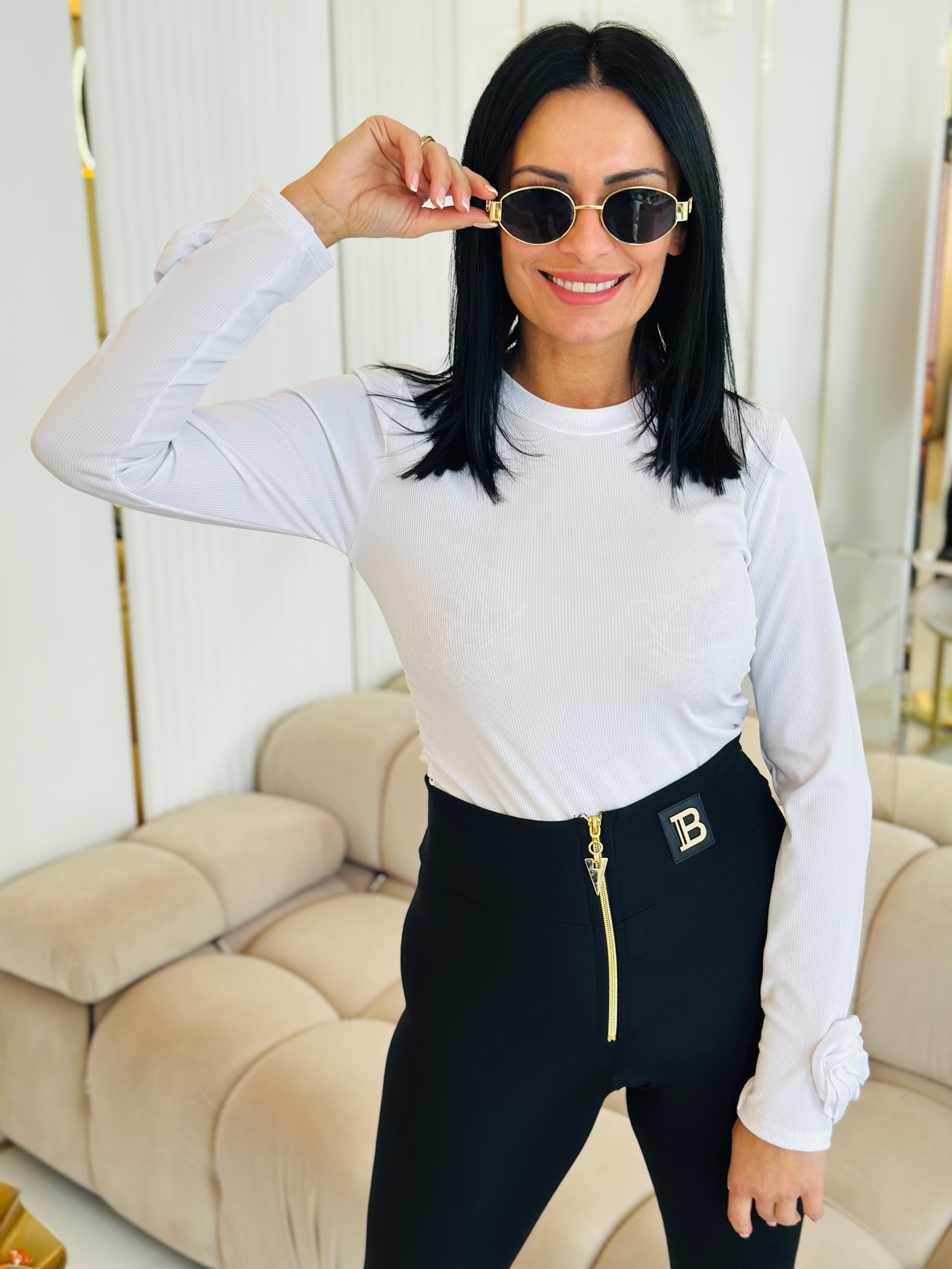 Ta bluzka to ulepszony basic, który jest absolutnie niezbędny w każdej kapsułowej garderobie. Wykonana z elastycznej, prążkowanej dzianiny, gwarantuje idealne dopasowanie i wygodę, a subtelne detale dodają jej charakteru. Jest to idealna baza pod marynarkę, sweter lub do noszenia solo w bardziej casualowych zestawach.