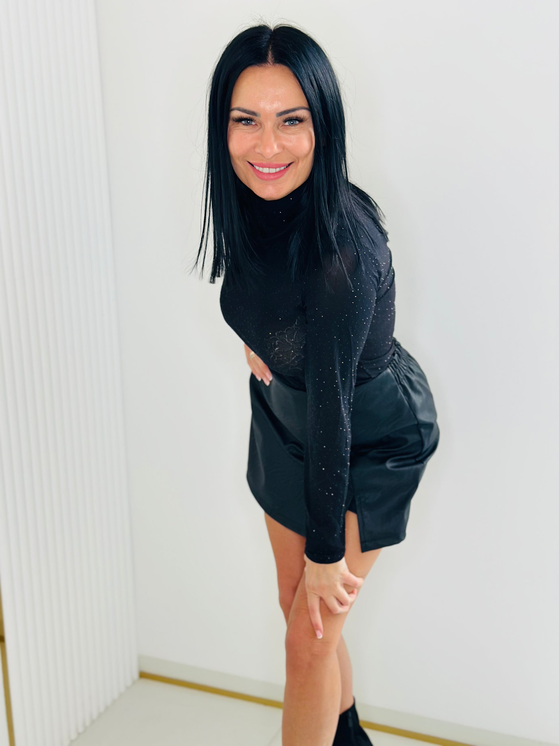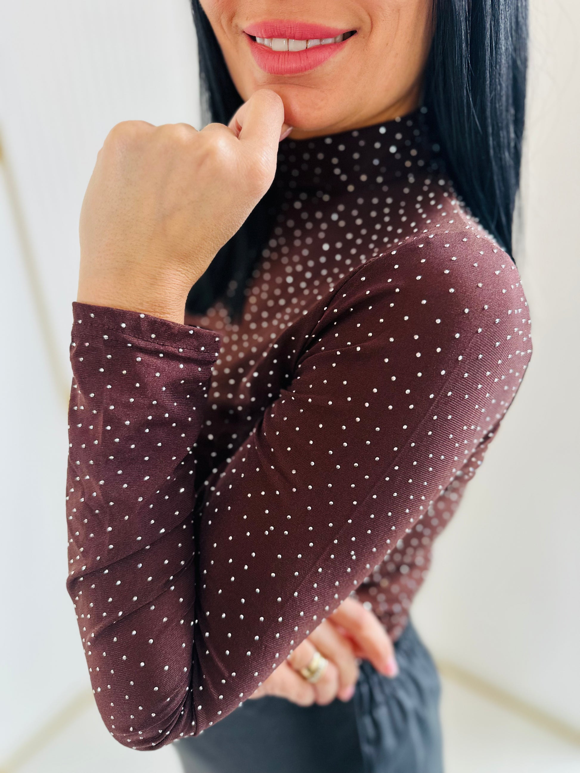 Dodaj blasku swojej wieczorowej stylizacji! Ta dopasowana bluzka to absolutny hit na imprezy i specjalne okazje. Wykonana z delikatnej, lekko transparentnej siateczki, została gęsto pokryta błyszczącymi cyrkoniami, które pięknie mienią się w świetle.