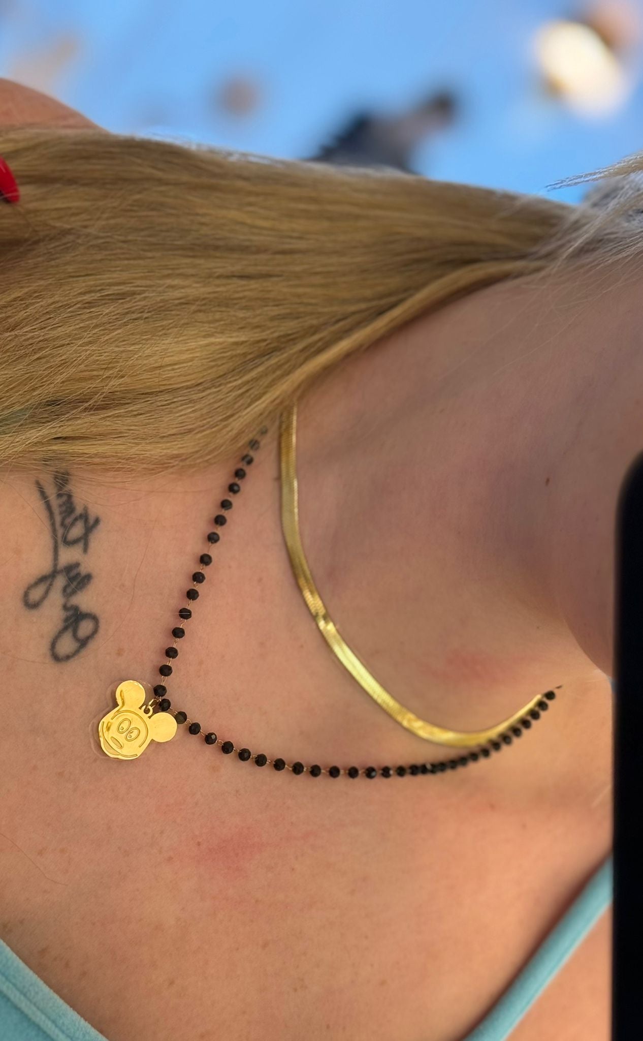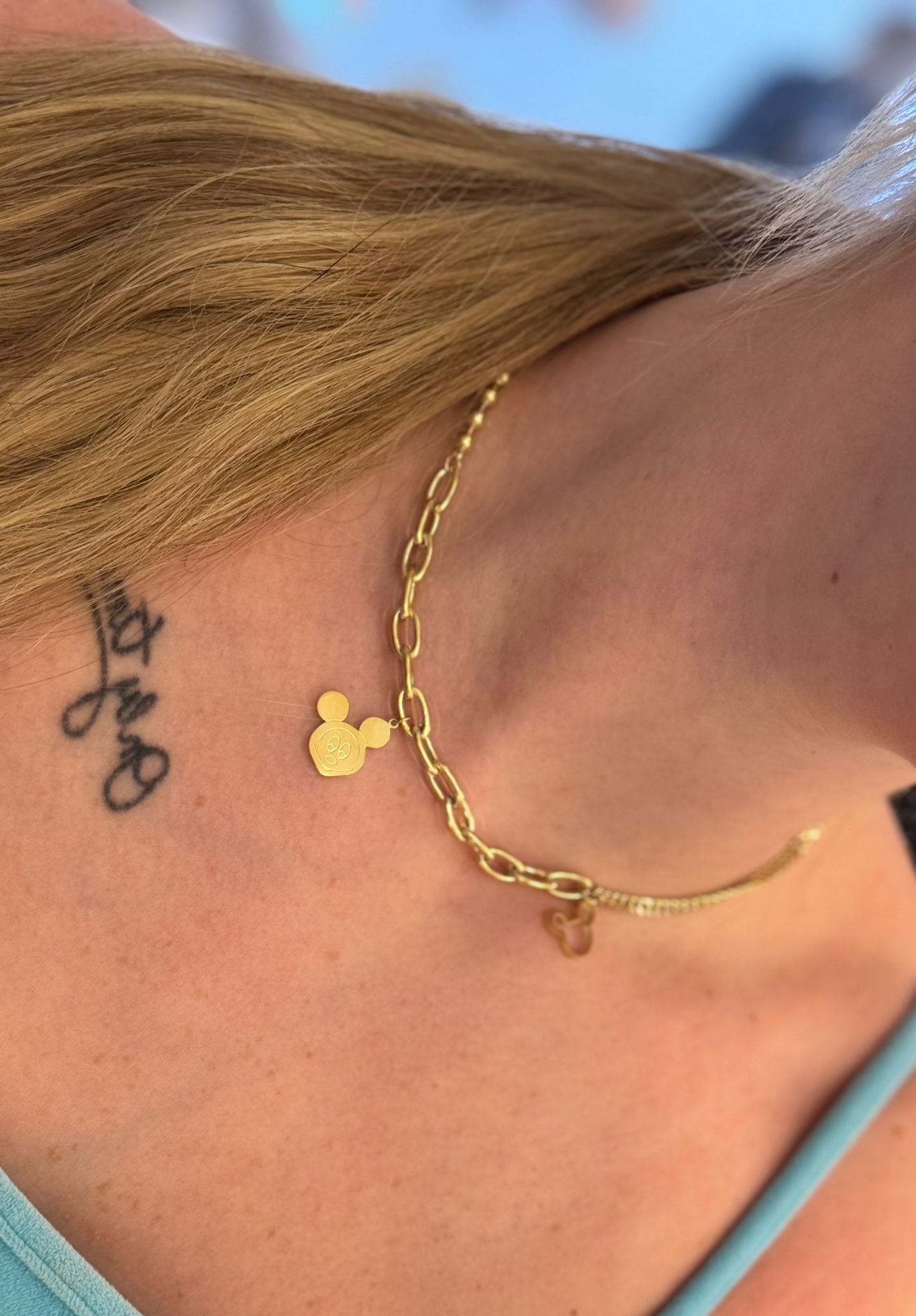 Motyw: Każdy naszyjnik posiada zawieszkę z kultową sylwetką głowy myszki z grawerowanym detalem.